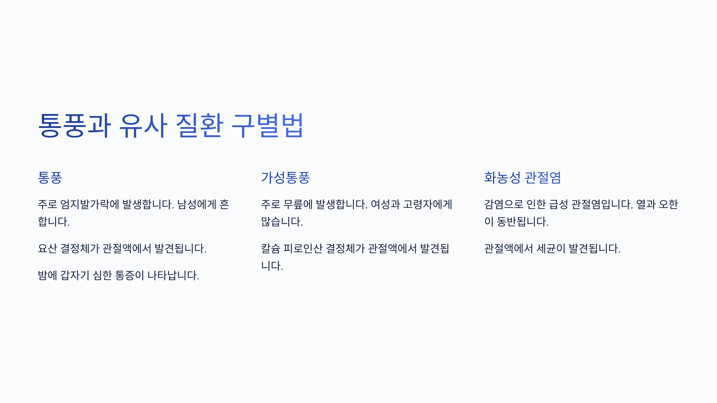통풍과 유사한 질환 구분법