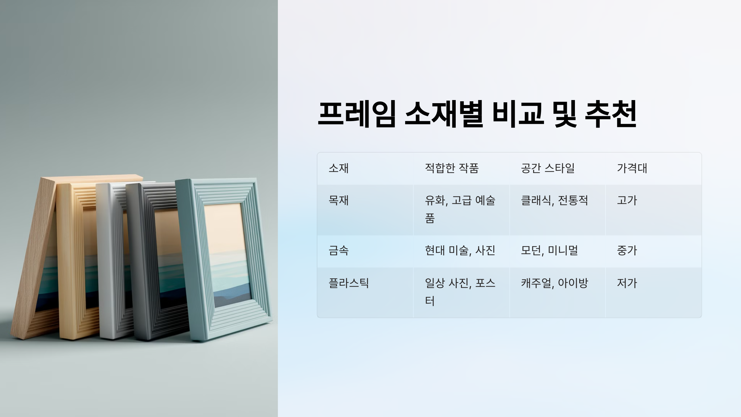 Q: 가장 가성비 좋은 액자 프레임은 어떤 소재인가요?