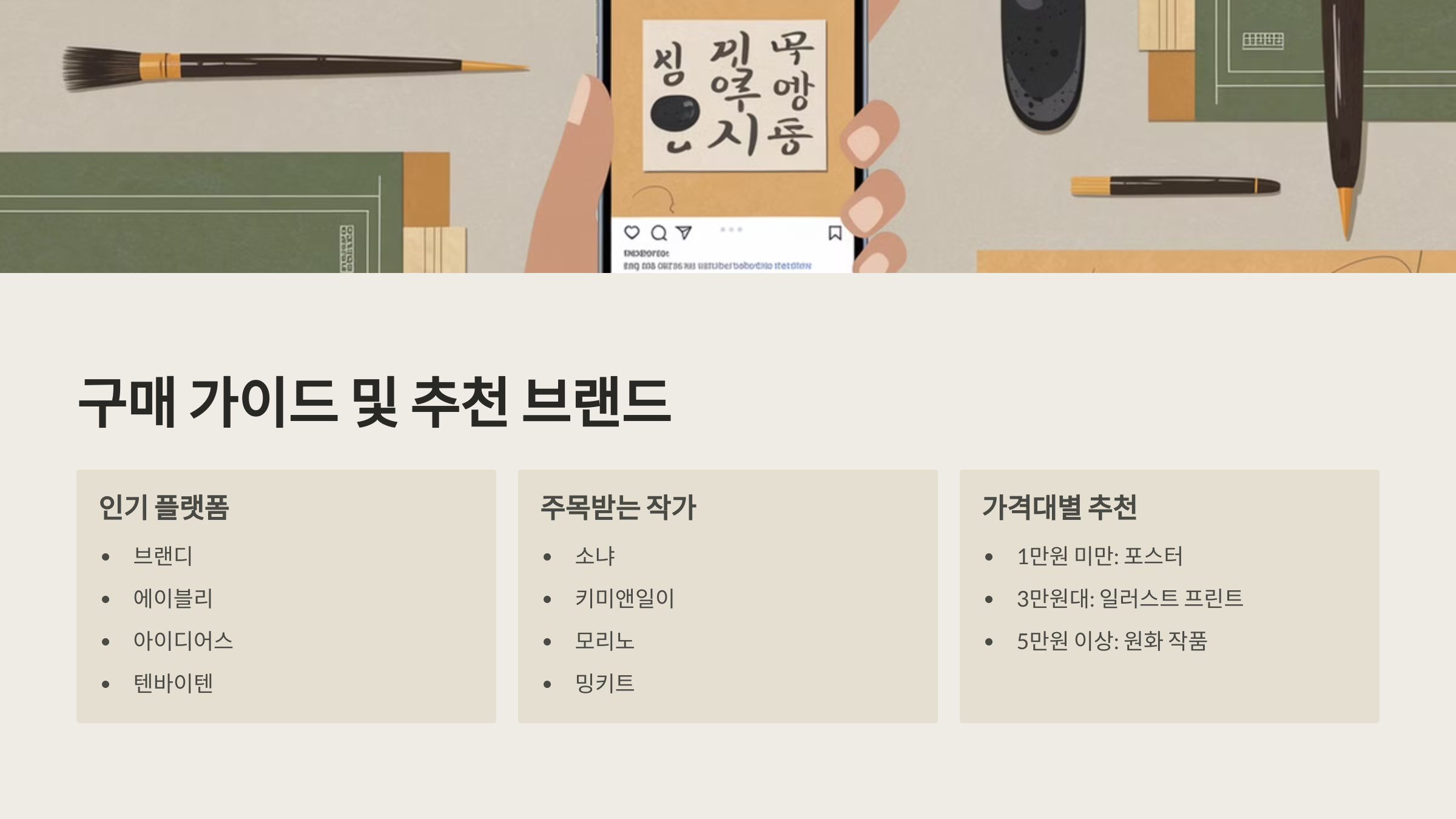 | 온라인 스토어 | 쿠팡, 텐바이텐, 오늘의집, 작가 개별 스토어에서 다양한 스타일 구매 가능 |