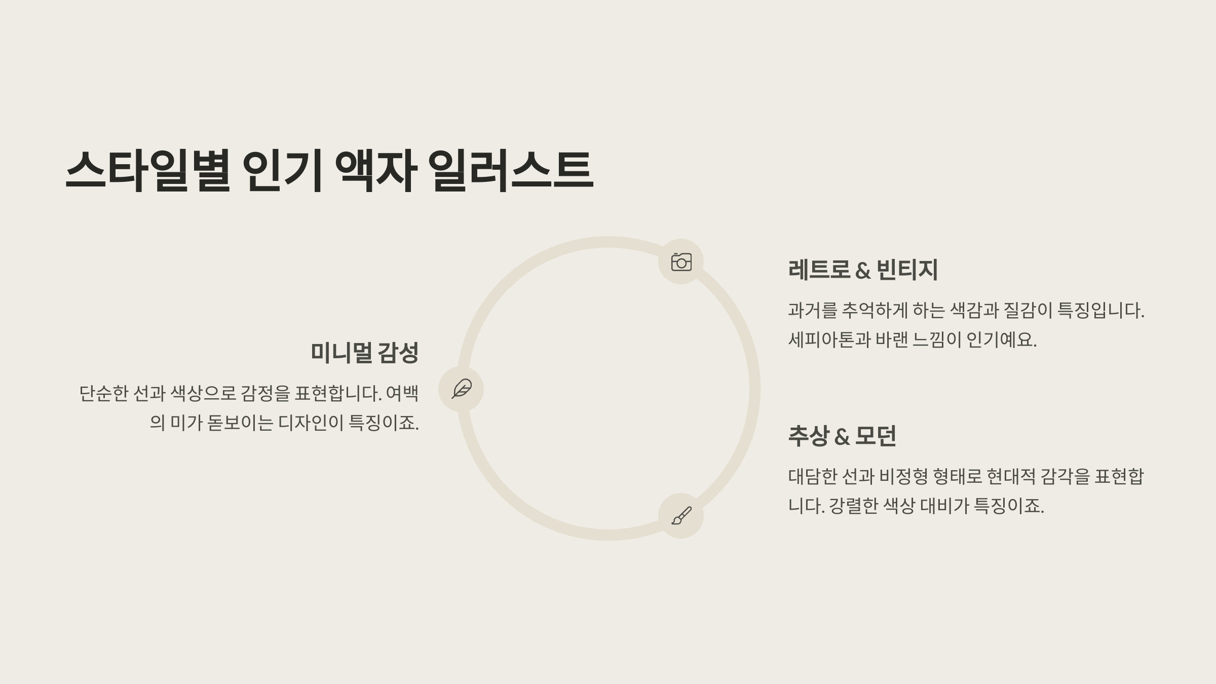 | 미니멀 감성 | 심플한 디자인과 절제된 컬러 조합, 모던한 분위기 연출 |